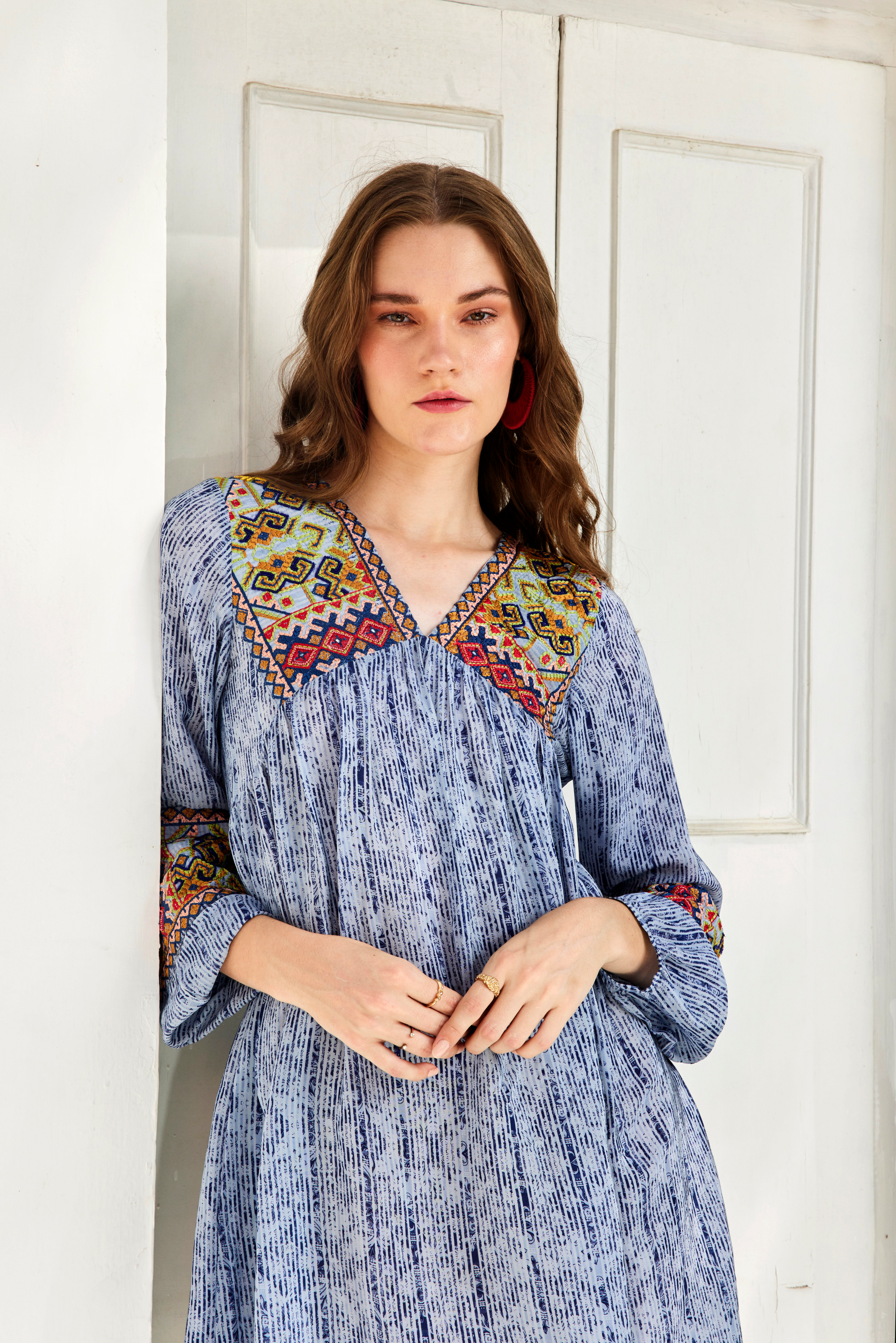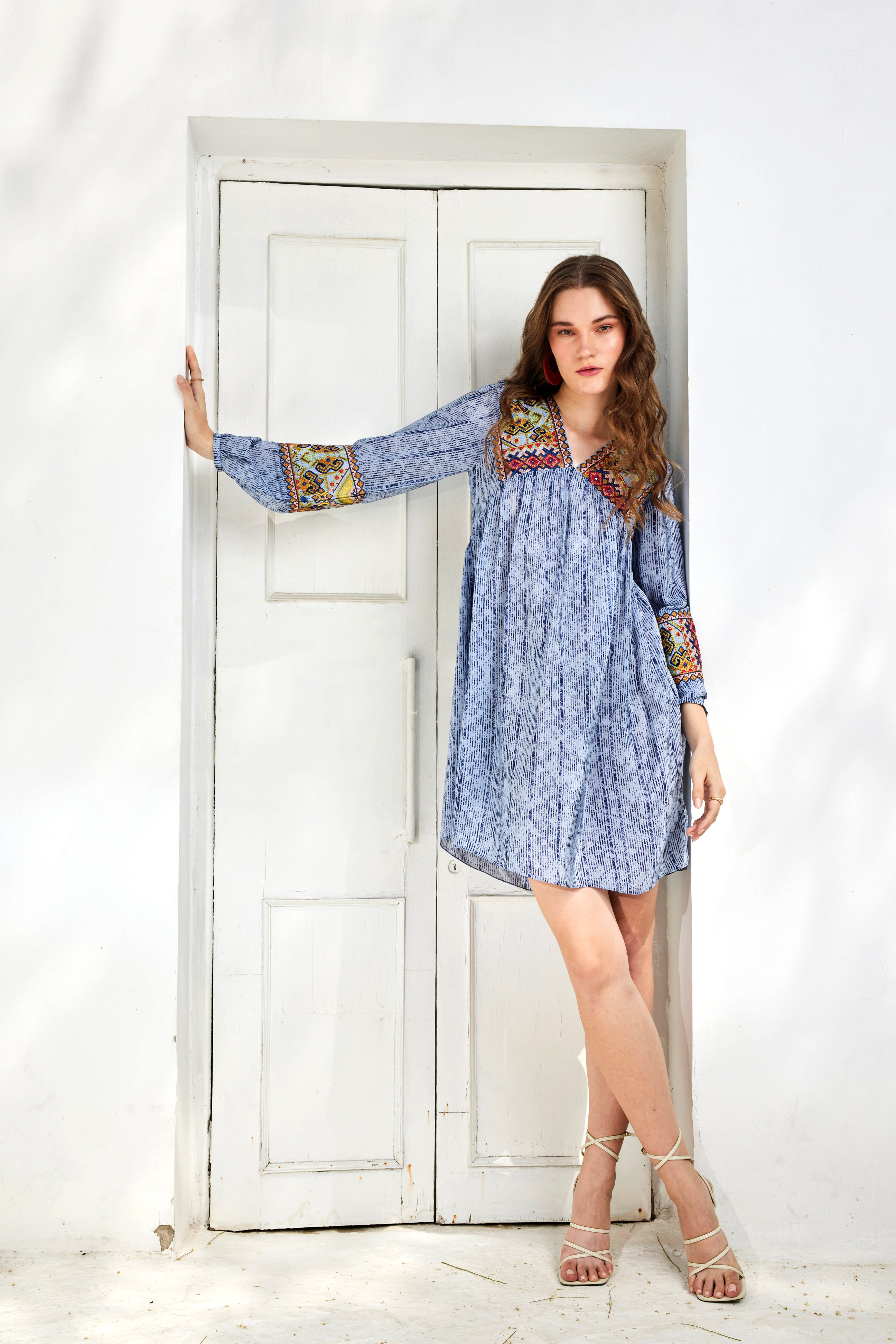 The Tunic Dress comes with an ethereal work of art on the neckline and sleeves with all over print, to give you a chic look