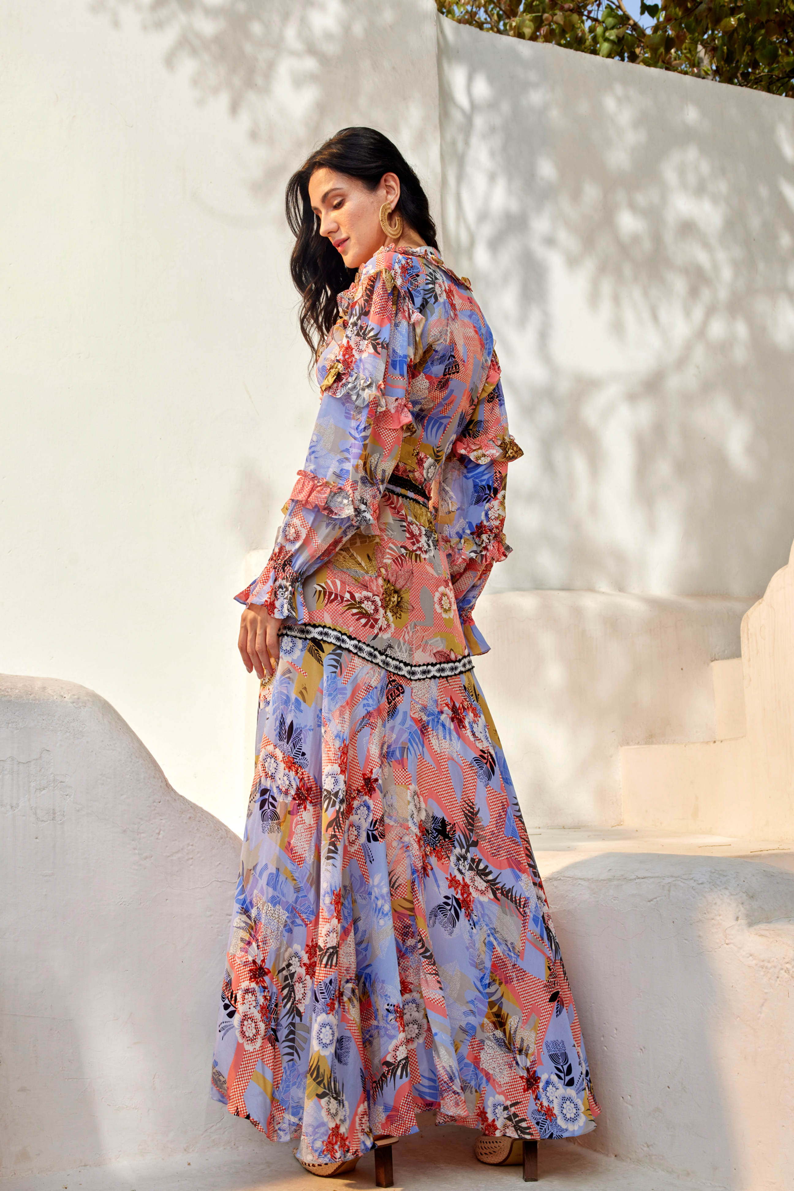 With a stunning abstract finish - this maxi skirt takes centre stage in any ensemble.