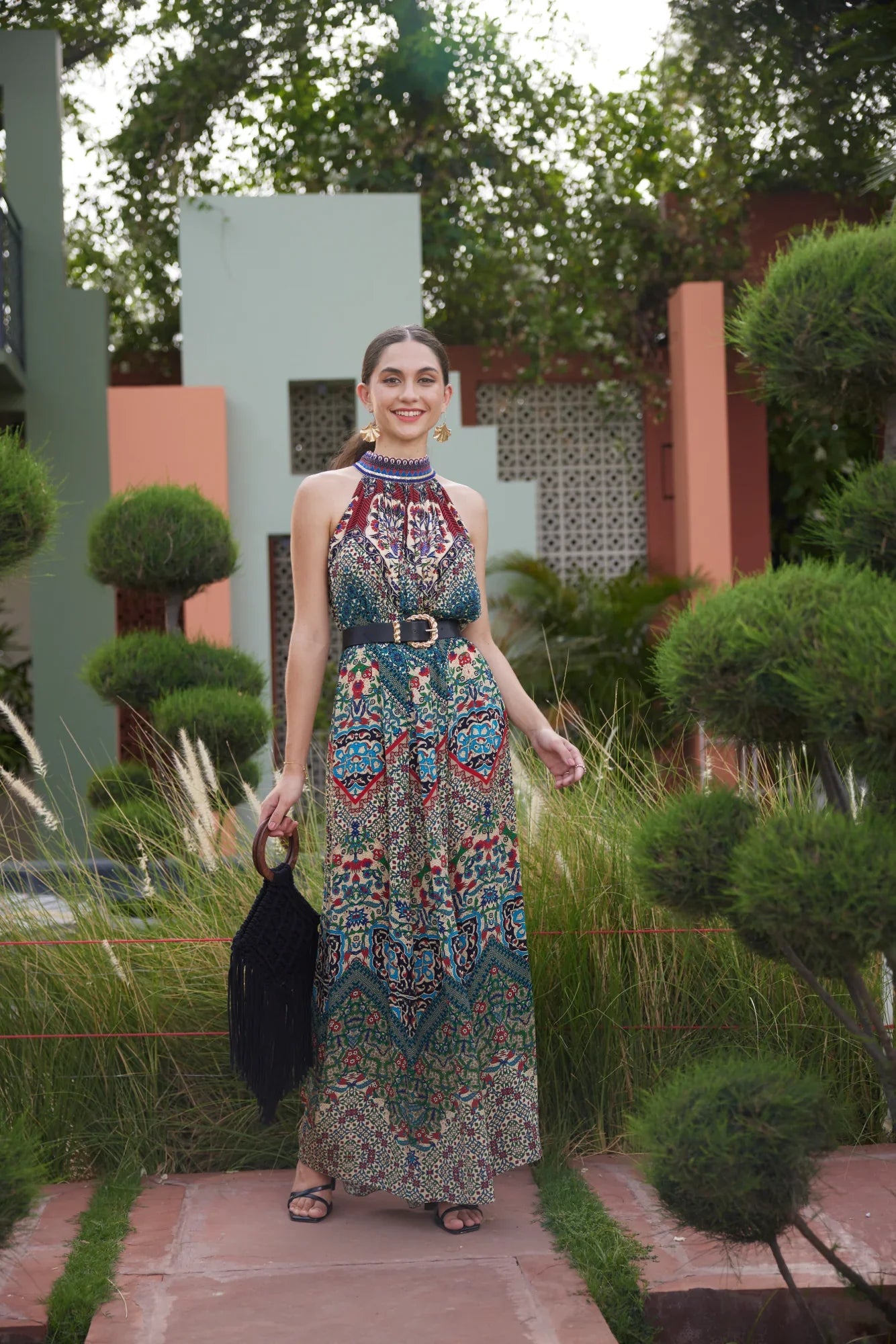 With electric colour palette, this dress will embellish your enchanted armoire.