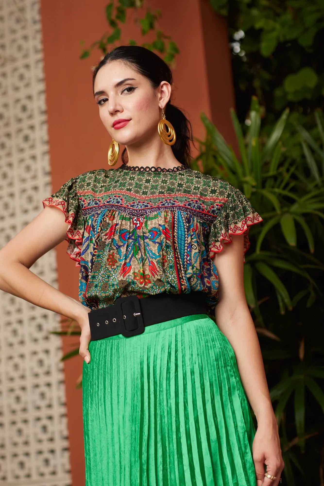The pop colours of this top and its effortless beauty are perfect for a lunch date.