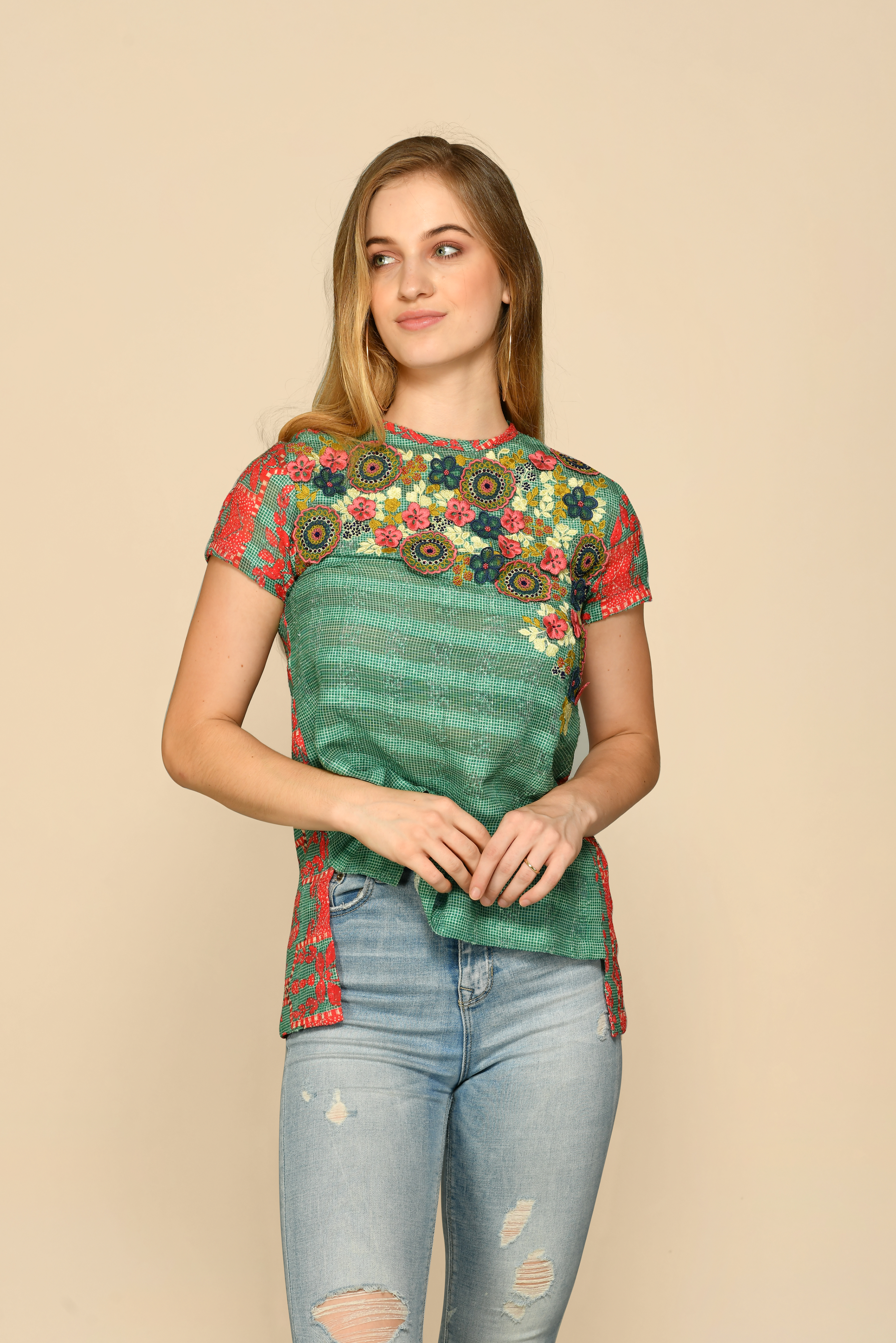 The Embroidered Mesh Top Features a Viscose Base With Elegant Placement Of Embroidery.