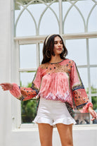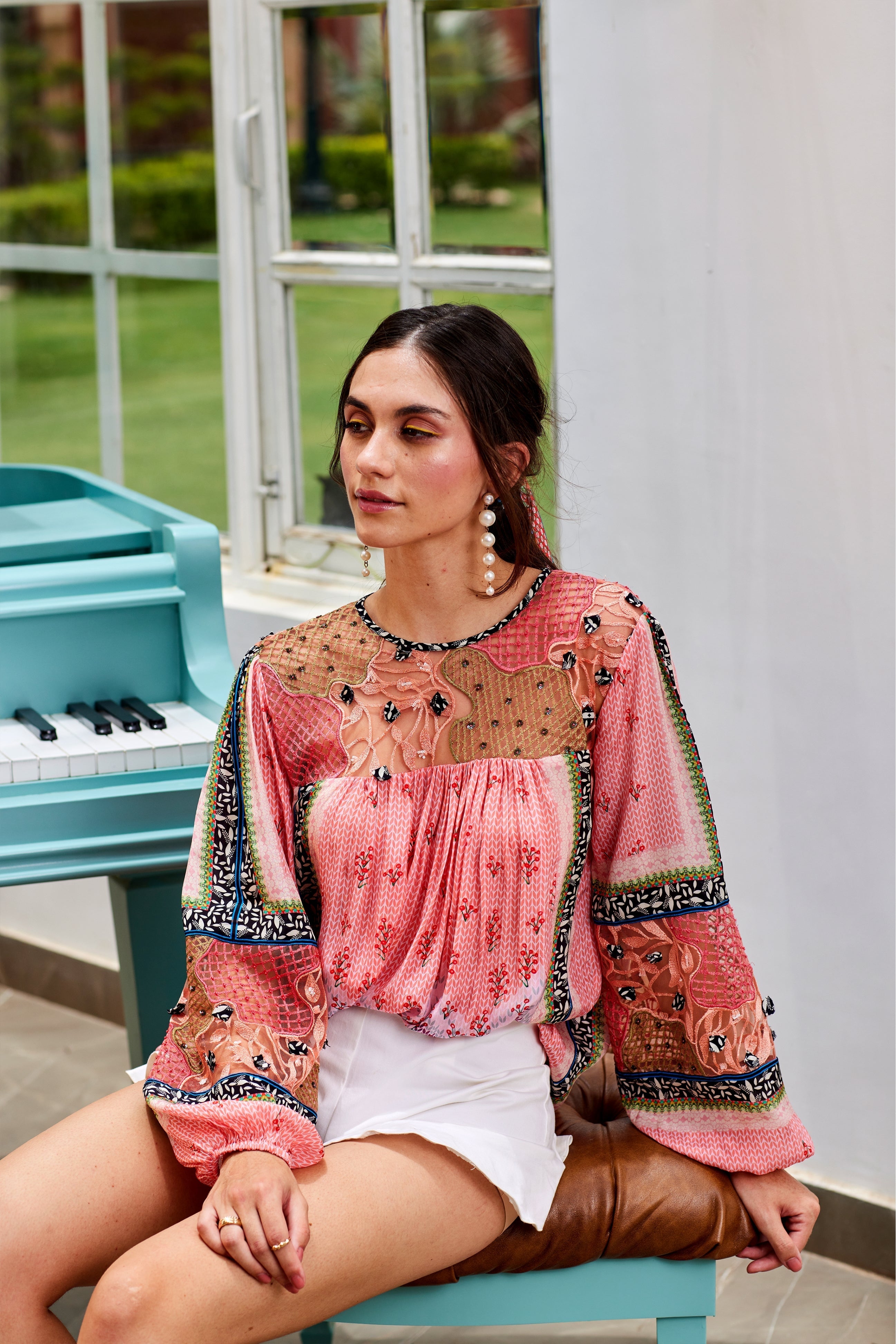 Lace Details And Shimmery Sequined Accents Make This Peasant Blouse A Sophisticated Favorite.