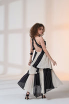 With every step, the breeze and fabric create a dance of their own.