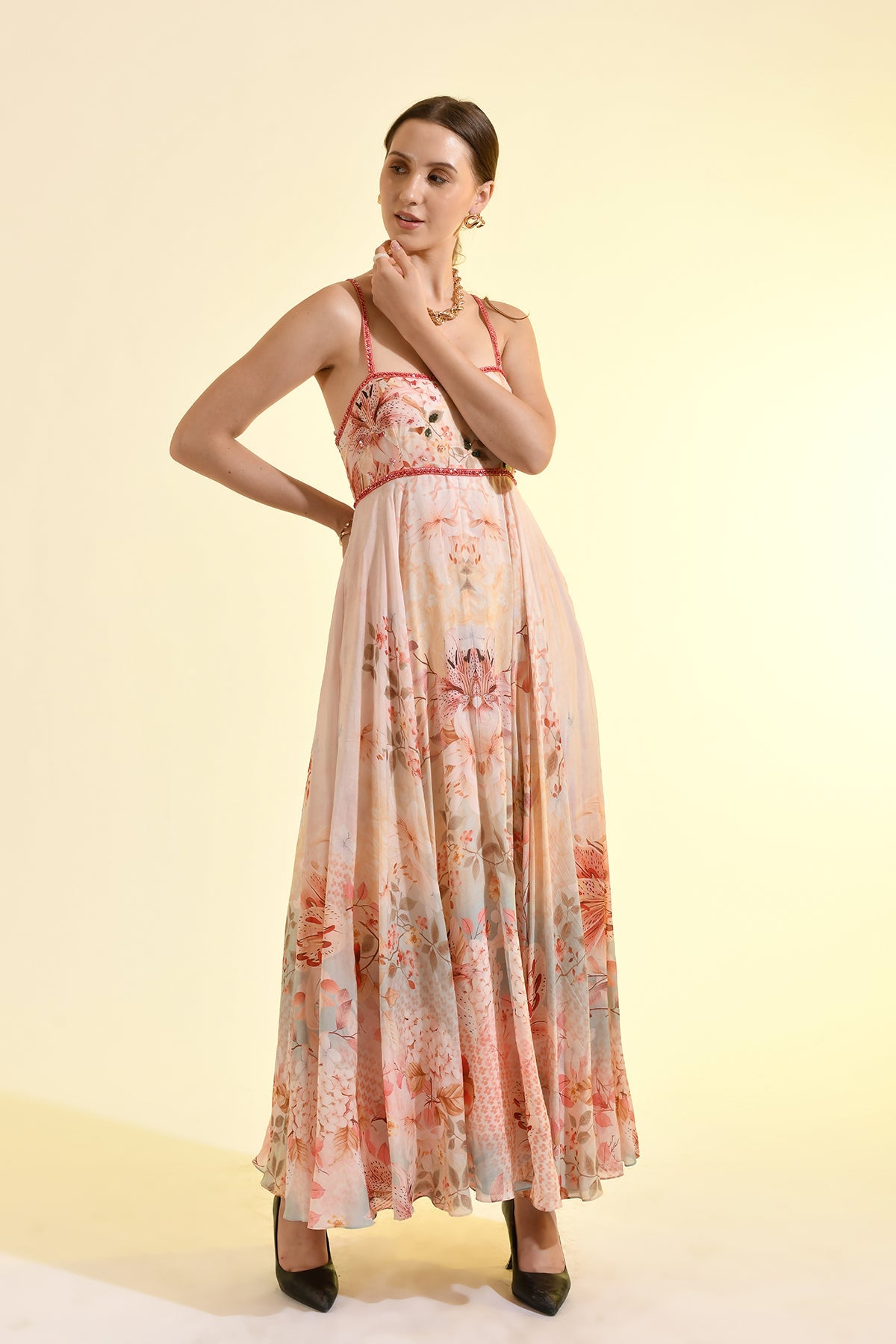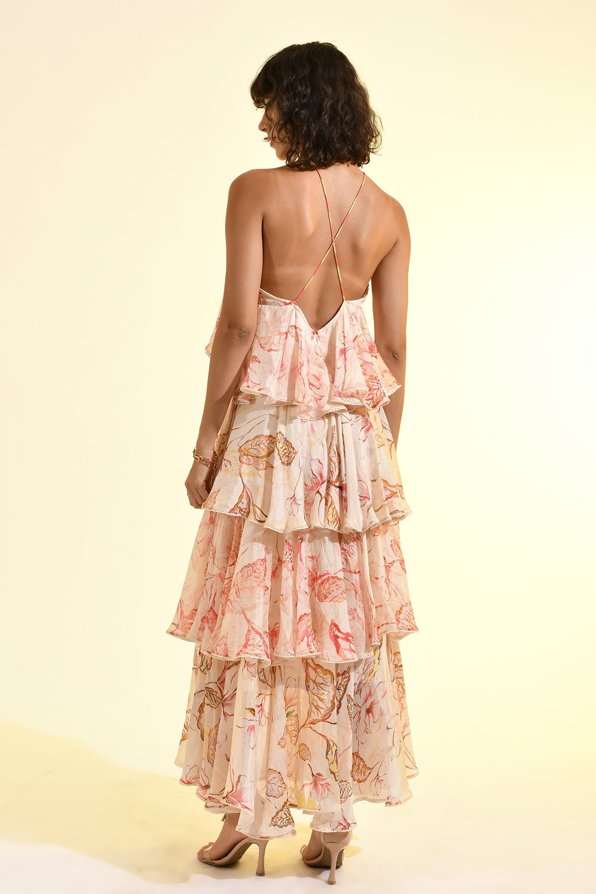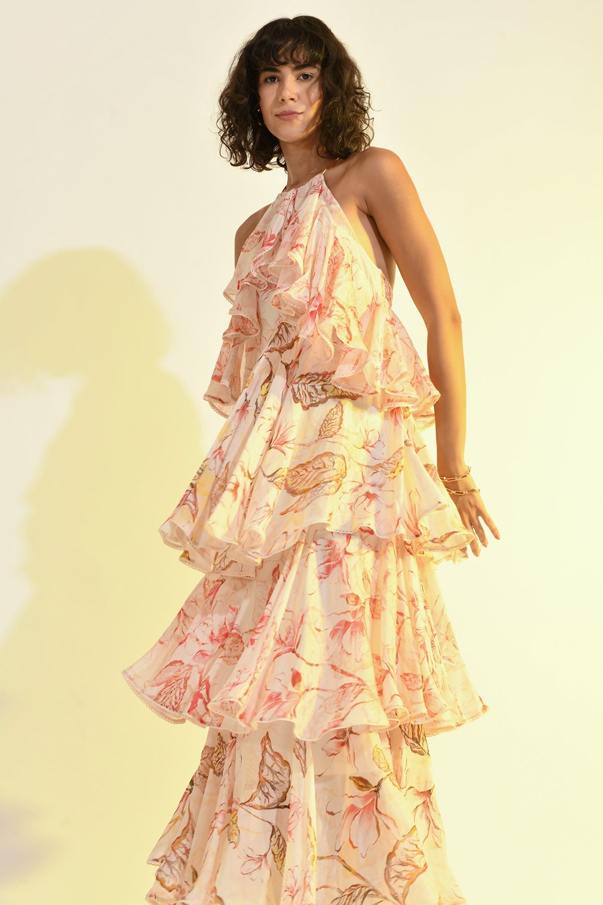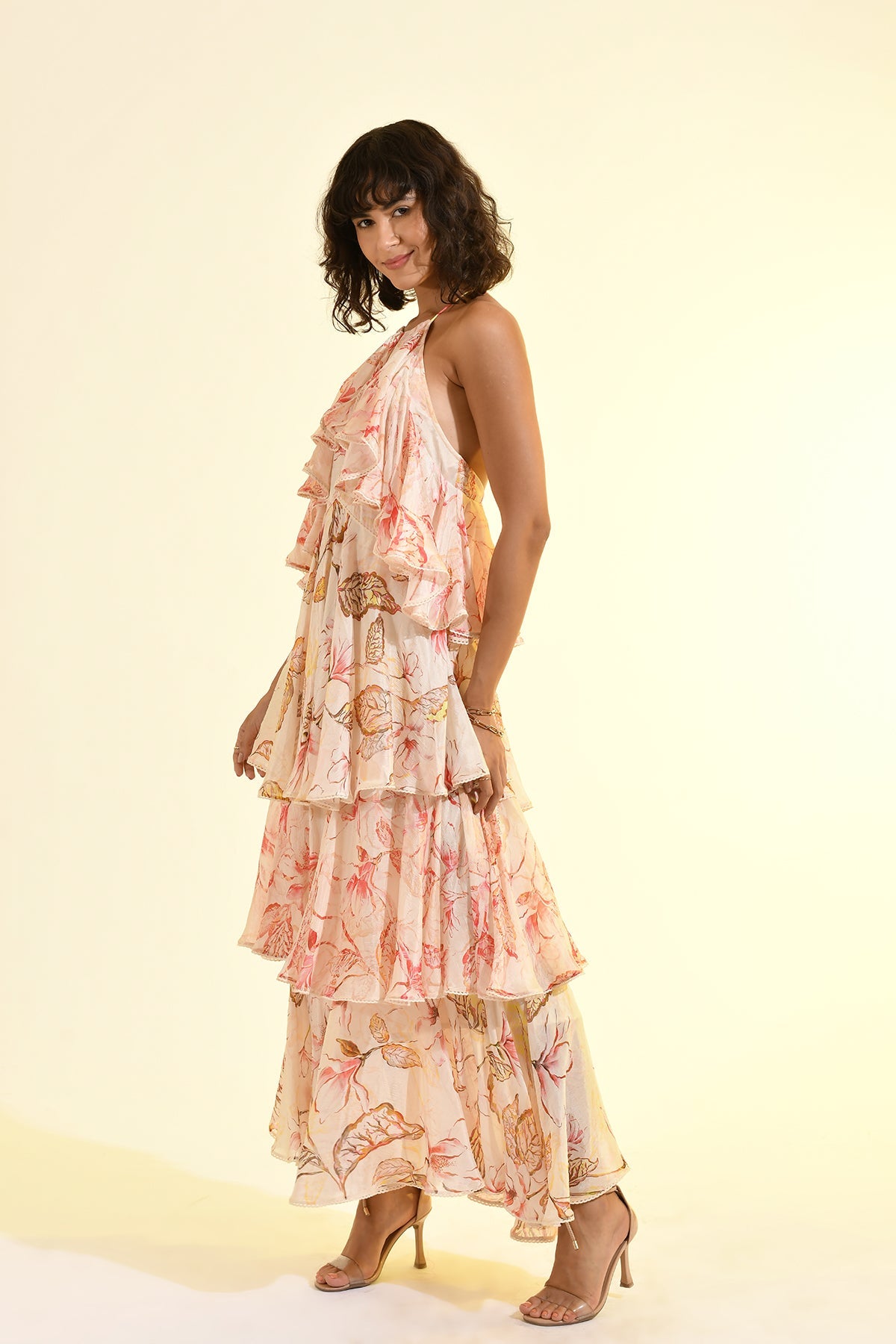 FLORAL BLUSH RUFFLE MAXI DRESS