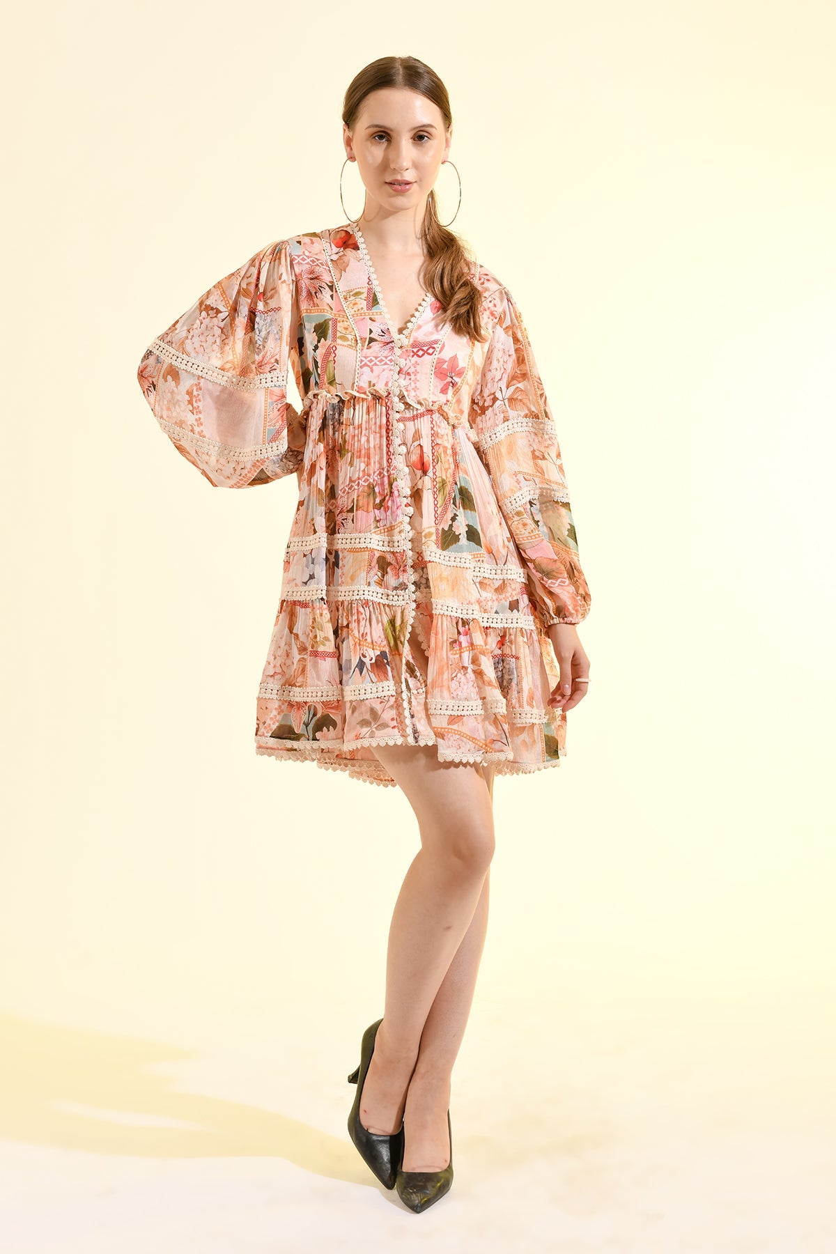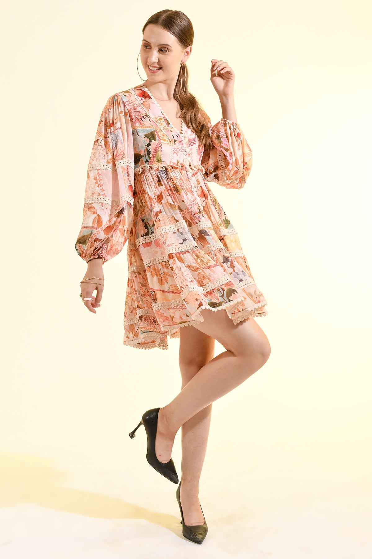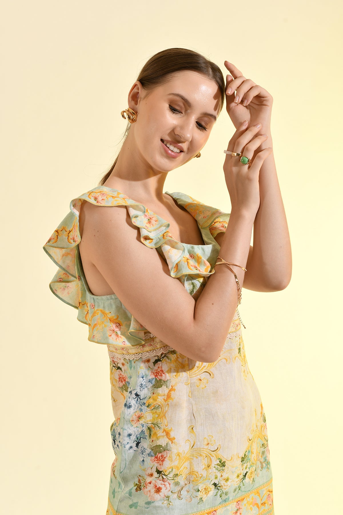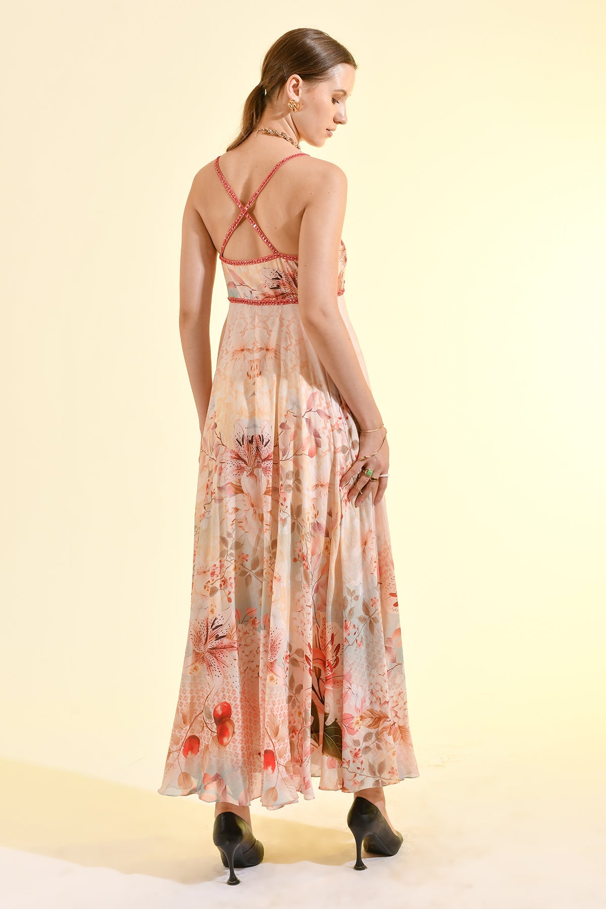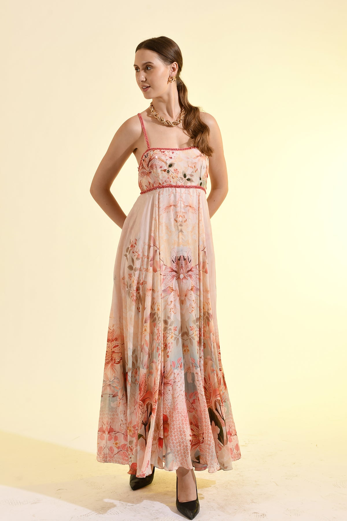 FLORAL BLUSH RUFFLE MAXI DRESS