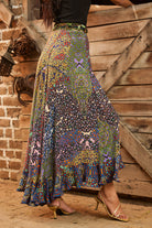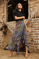 This skirt is adorned with earthy and bold colours that enhance the appeal of the drape.