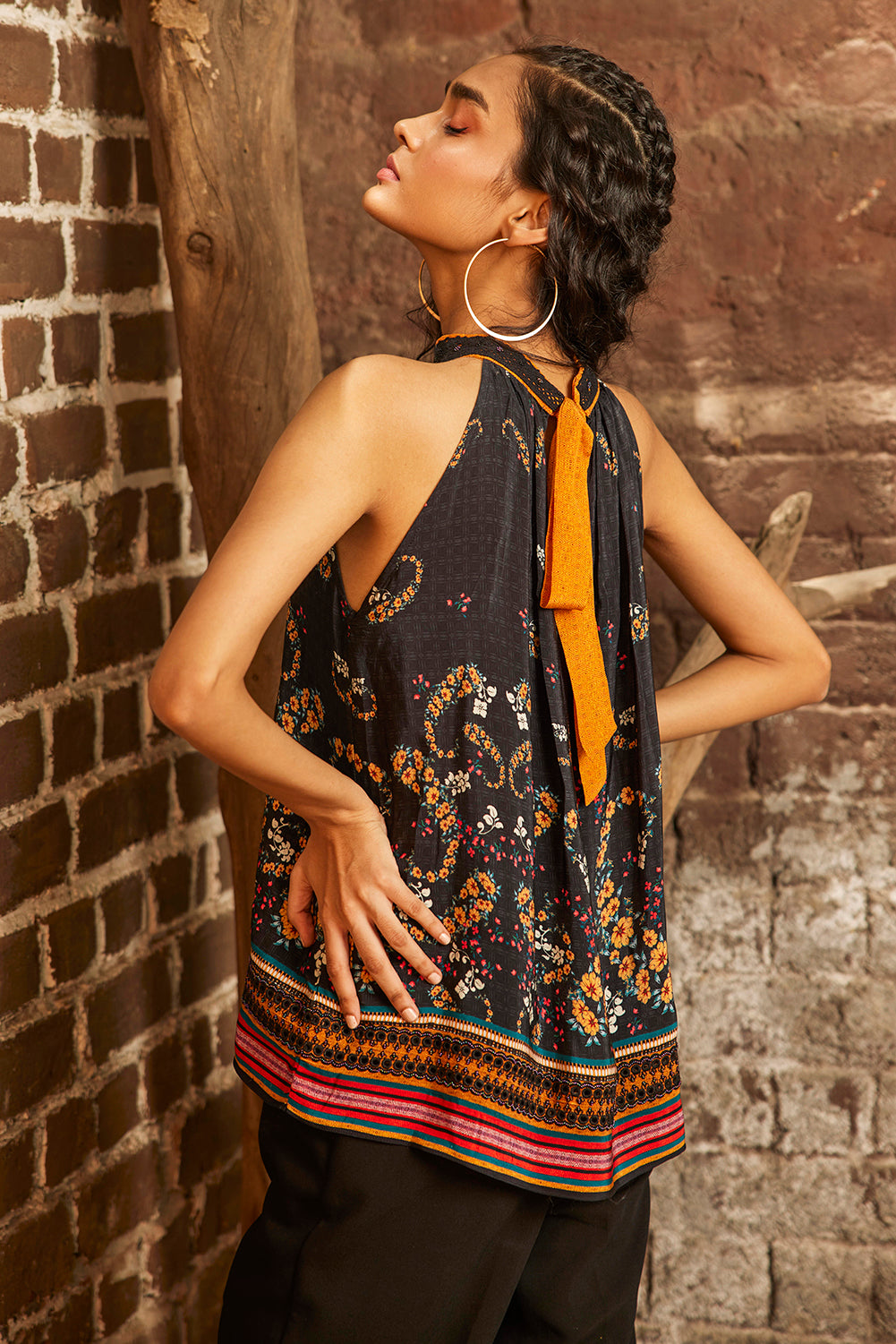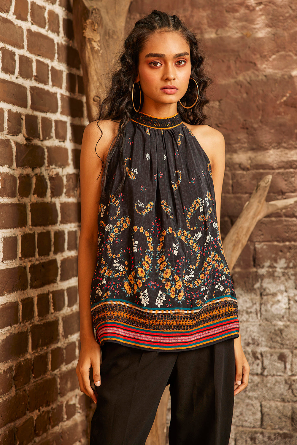 Cater to a playful and youthful vibe by styling this exquisite top with pants.