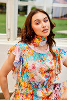 Adorned With Eye-Catching Prints, This Ruffled Blouse Is A Springtime Staple.