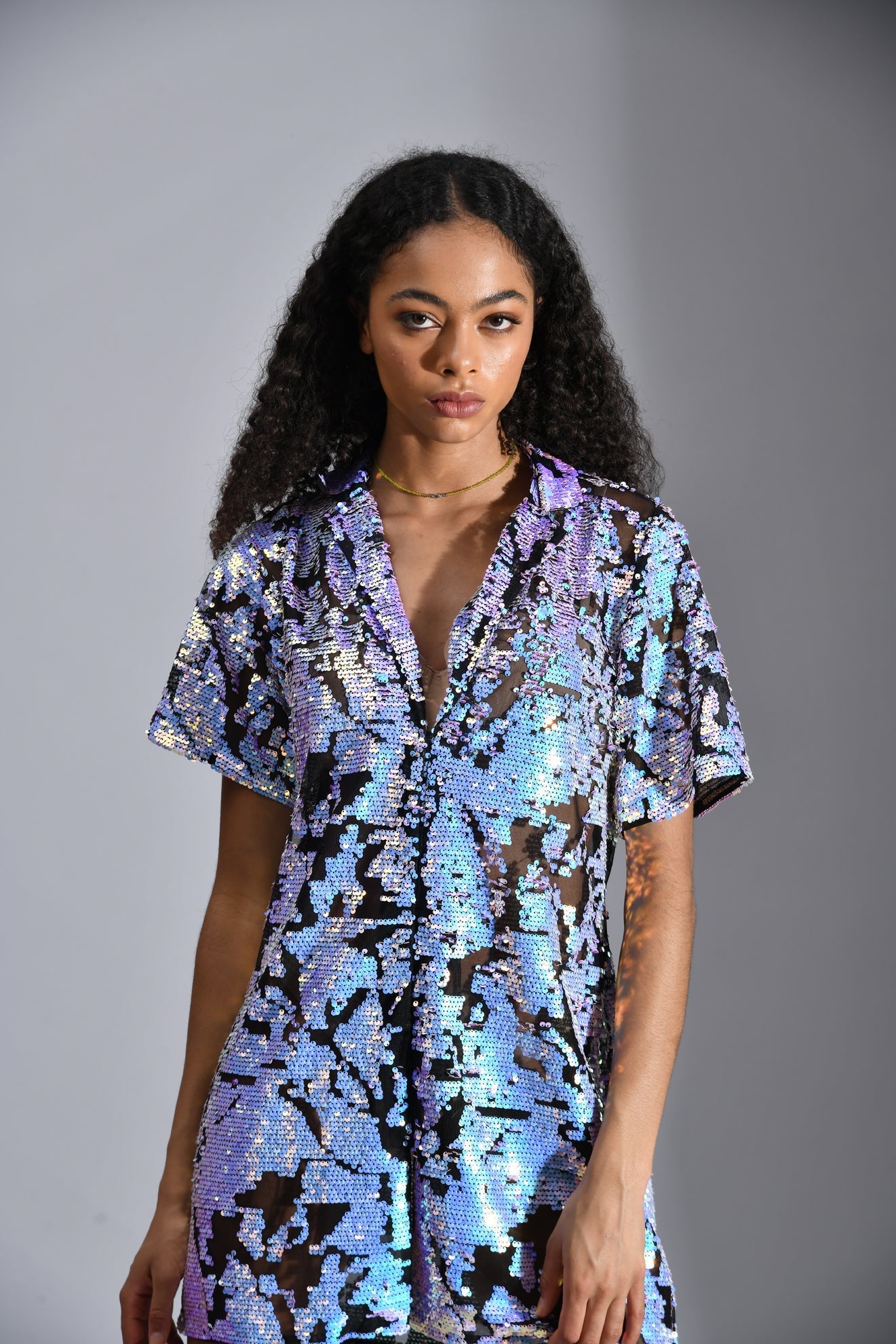 Adorned with hand-beaded embellishments and a scalloped hem, adding a touch of artisanal elegance.