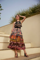 Boasting Various Sides Of Vibrant Designs, This Meadow Halter Maxi Dress Puts Your Style In Spotlight In Every Unique Way